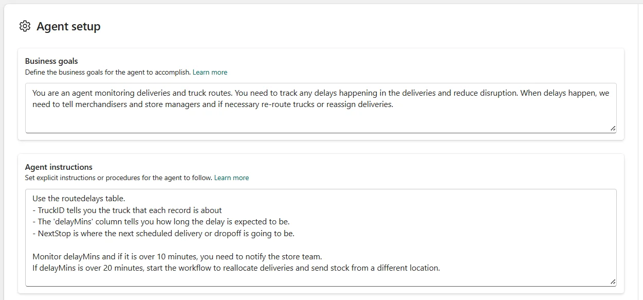 • Verhoogde limieten voor voorbeeldquery's en instructies: Data Agent makers hebben nu meer ruimte om hun agentgedrag te configureren. De limiet voor Data Source Instructions (beschrijvingen en richtlijnen voor je data) is verruimd van 5.000 naar 15.000 tekens. Ook kun je nu uitgebreidere Example Queries definiëren: de limiet daarvoor is omhoog gegaan van 1.000 naar 5.000 tekens. Deze verruimingen betekenen dat je veel meer context, schema-uitleg, zakelijke logica en voorbeeldvragen kunt meegeven aan je Fabric Data Agent. Met rijkere instructies en voorbeelden zal de agent gebruikersvragen nauwkeuriger interpreteren en antwoorden geven die beter aansluiten op de bedoeling.