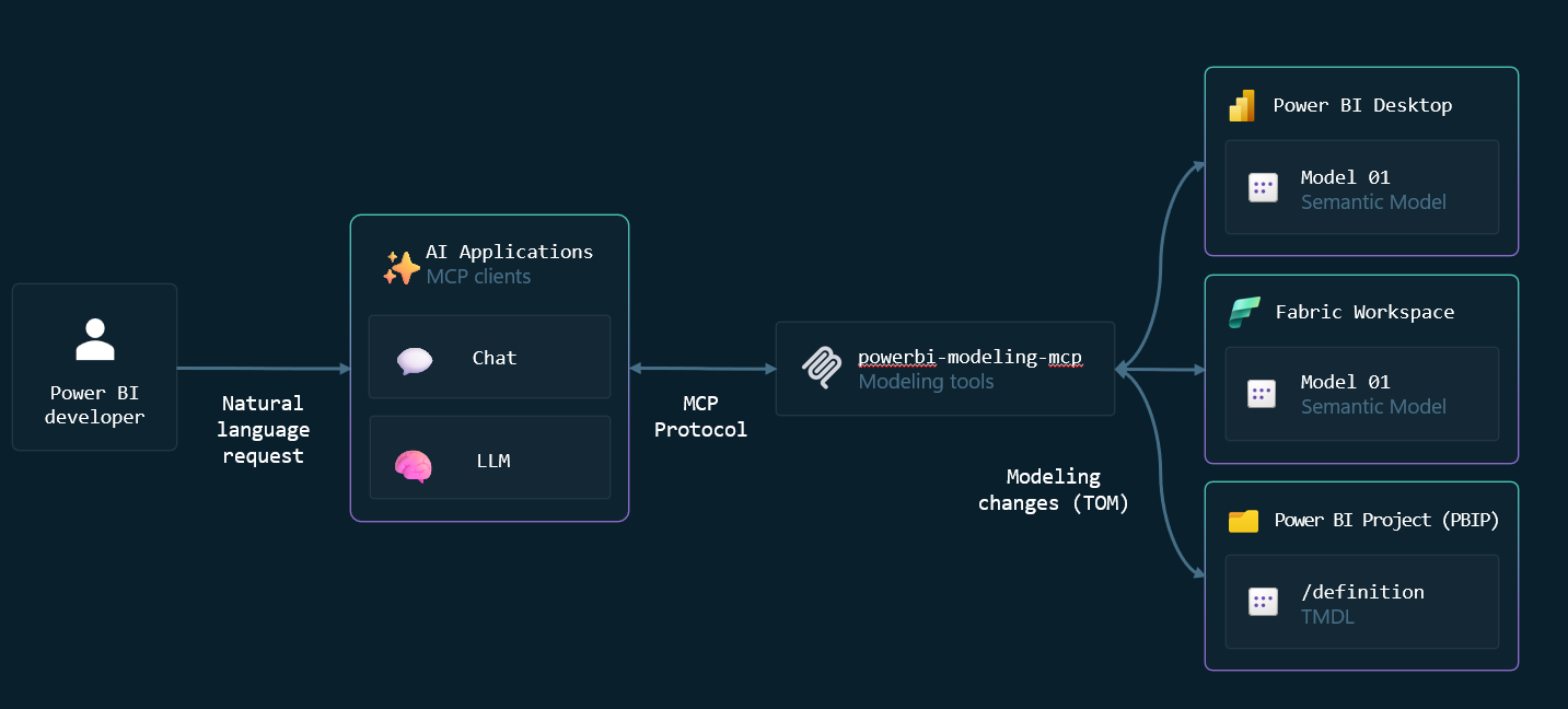 • Power BI Modeling MCP Server (preview): De nieuwe Power BI Modeling MCP Server (Preview) brengt semantische modelleerfunctionaliteit naar AI-agents via een lokale MCP-server. Hiermee kunnen ontwikkelaars en AI-tools modelleringstaken uitvoeren met natuurlijke taal, complexe modelaanpassingen in bulk doorvoeren en automatisch modellering best practices toepassen. Denk aan het simpelweg beschrijven welke tabel, kolom of maatwerkberekening je nodig hebt, waarna het model dienovereenkomstig wordt aangepast. Er is een Visual Studio Code-extensie beschikbaar om deze MCP-server te gebruiken (bijvoorbeeld in combinatie met GitHub Copilot) voor een efficiëntere, AI-ondersteunde model-ontwikkeling.